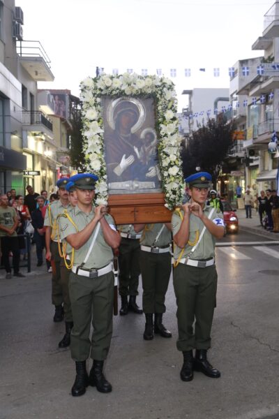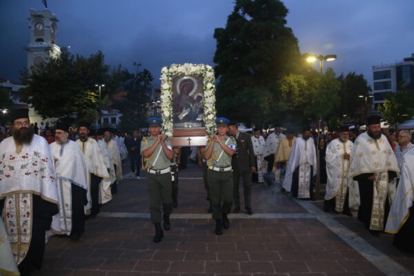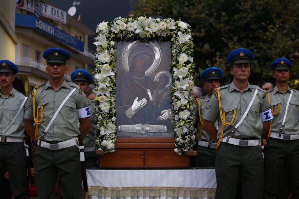 Νωρίτερα στην κεντρική πλατεία με ιδιαίτερες τιμές πραγματοποιήθηκε η υποδοχή της ιεράς εικόνας της Παναγίας Αρχαγγελιωτίσσης όπου ανέπεμψαν δέηση. Ο Αρχιεπίσκοπος ευχήθηκε σε όλους χρόνια πολλά ενώ ο Μητροπολίτης Ξάνθης στο σύντομο χαιρετισμό του ευχαρίστησε τον Μακαριώτατο, τους Αρχιερείς και όλους τους παρευρισκόμενους ενώ υπογράμμισε ότι η πόλη οφείλει την ελευθερία της στην Παναγία την Αρχαγγελιώτισσα επισημαίνοντας πως η ελευθερία δεν χαρίζεται σε κανέναν άνθρωπο και κανένα λαό αλλά κερδίζεται.