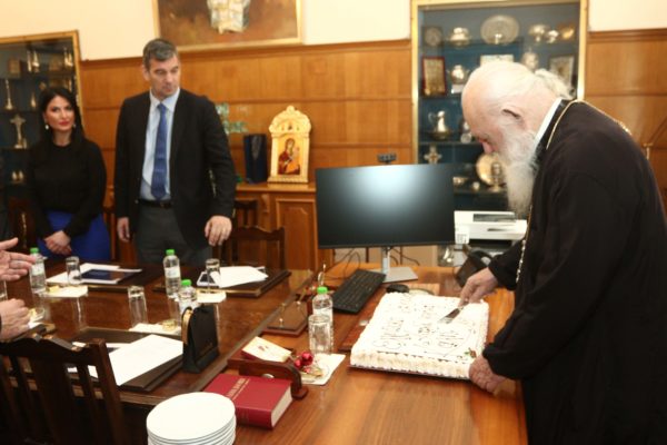 Τέλος, ο Αρχιεπίσκοπος, ευλόγησε την βασιλόπιτα του Ιδρύματος και ευχήθηκε σε όλους, καλή, ευλογημένη και δημιουργική χρονιά, πάντα με υγεία.