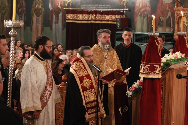 Ο Σεβασμιώτατος κήρυξε τον θείο λόγο αναφερόμενος στο ιερό πρόσωπο της Κυρίας Θεοτόκου, κατά την πατερική θέση ως «μεθόριον κτιστής και ακτίστου φύσεως». Στην ακολουθία παραβρέθηκε και ο Εξοχώτατος Πρόεδρος της Ελλην. Δημοκρατίας κ. Πρ. Παυλόπουλος, ο οποίος αφού έλαβε την ευχή του Σεβασμιωτάτου παρέμεινε ανάμεσα στο εκκλησίασμα ως απλός πιστός.