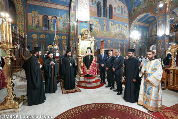 Μετά την λαμπρή υποδοχή ακολούθησε πανηγυρικός Εσπερινός χοροστατούντος του Σεβασμιωτάτου κ. Παντελεήμονος και συγχοροστατούντος του Θεοφιλεστάτου Επισκόπου Ευρίπου κ. Χρυσοστόμου.