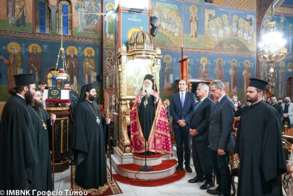 Μεγάλη ὄντως εὐλογία καί χάρη συνοδεύει τήν ἱερά αὐτή καί περίπυστο εἰκόνα τῆς Παναγίας τῆς Σουμελᾶ, τήν ὁποία μεταφέραμε σήμερα ἀπό τό ἱερό της κατοικητήριο, τό Πανελλήνιο Ἱερό Προσκύνημά της στό ὄρος Βέρμιο τῆς Ἠμαθίας, μέ τήν τιμητική συνοδεία ἐκπροσώπων τοῦ Διοικητικοῦ Συμβουλίου τοῦ Σωματείου «Παναγία Σουμελᾶ», ἀνταποκρινόμενοι στήν πρόσκληση τοῦ Μακαριωτάτου Ἀρχιεπισκόπου Ἀθηνῶν καί πάσης Ἑλλάδος κ. Ἱερωνύμου καί μέ τήν ἄδεια καί τήν εὐλογία του, γιά νά συνεορτάσει μαζί σας τή μνήμη τοῦ πολιούχου καί προστάτου τῆς ἐνορίας σας, τοῦ μεγαλομάρτυρος καί μυροβλύτου ἁγίου Δημητρίου, τοῦ Θεσσαλονικέως.