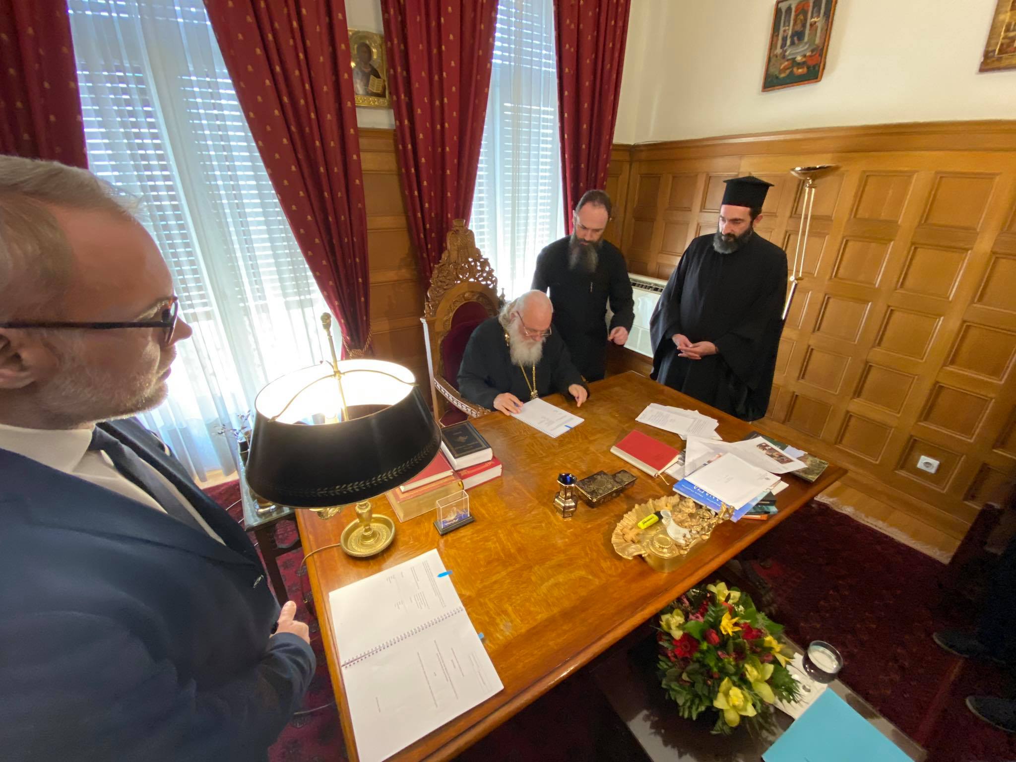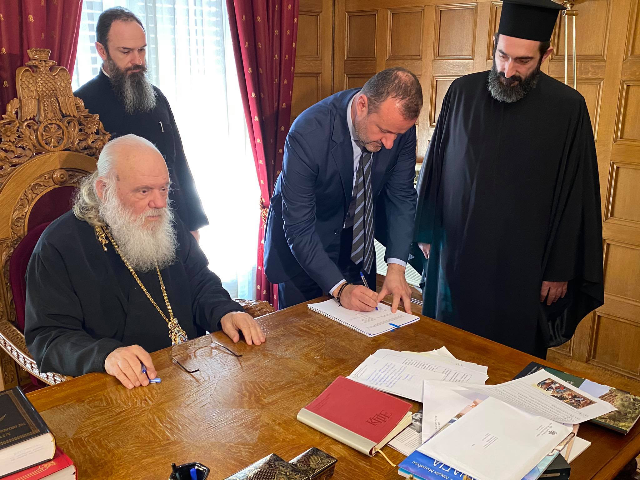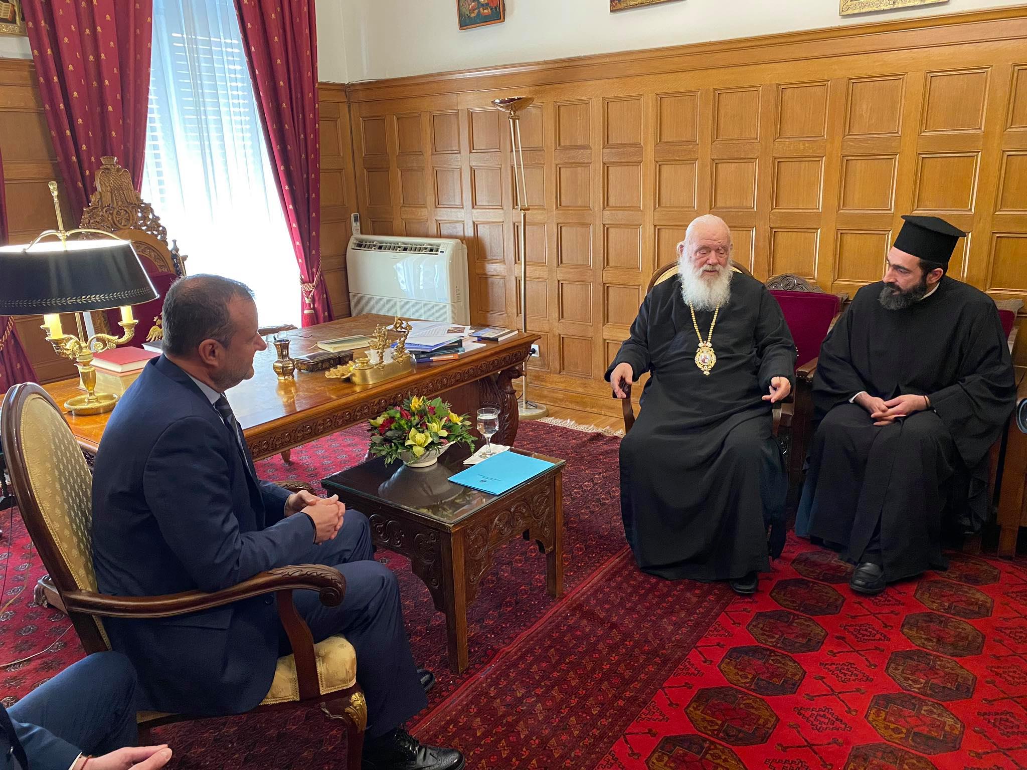 Με τον Πρόεδρο του Διεθνούς Οργανισμού Μετανάστευσης κ. Gianluca Rocco, συναντάται ο Αρχιεπίσκοπος Αθηνών και Πάσης Ελλάδος κ. Ιερώνυμος. Η συζήτηση επικεντρώνεται στο μεταναστευτικό και τις επιδράσεις στην ελληνική κοινωνία. Κατά τη διάρκεια της συνάντησης υπεγράφη σύμφωνο συνεργασίας για τα ασυνόδευτα παιδιά.