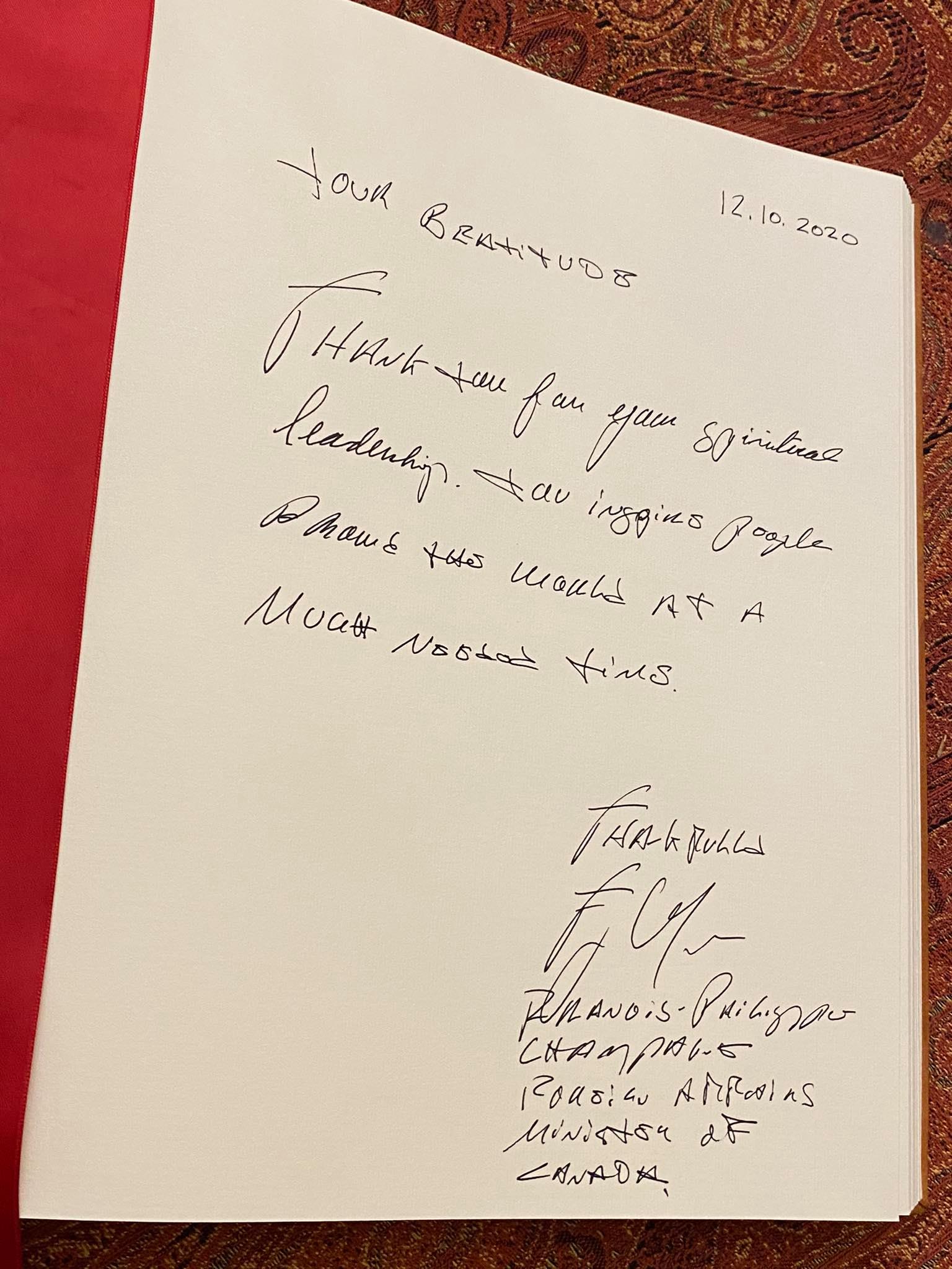 “Πρώτος σταθμός της περιοδείας μου. Η ελληνική εκκλησία παίζει σημαντικό ρόλο στα παγκόσμια δρώμενα” υπογράμμισε ο Καναδός υπουργός, και  αναφέρθηκε στον σπουδαίο αριθμό Ελλήνων που βρίσκονται στον Καναδά. Μίλησε για την σημαντική προσφορά της Εκκλησίας και κάλεσε τον Αρχιεπίσκοπο να βρουν θέματα, ώστε να στηρίξουν από κοινού τον λαό και κυρίως τη νεολαία.