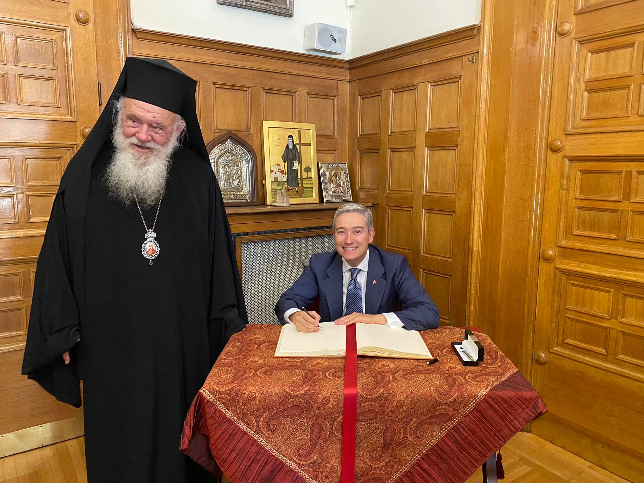 Συνάντηση με τον Υπουργό Εξωτερικών του Καναδά κ. François-Philippe Champagne έχει ο Αρχιεπίσκοπος Αθηνών και πάσης Ελλάδος κ.κ. Ιερώνυμος στο Μέγαρο της Ιεράς Αρχιεπισκοπής Αθηνών .