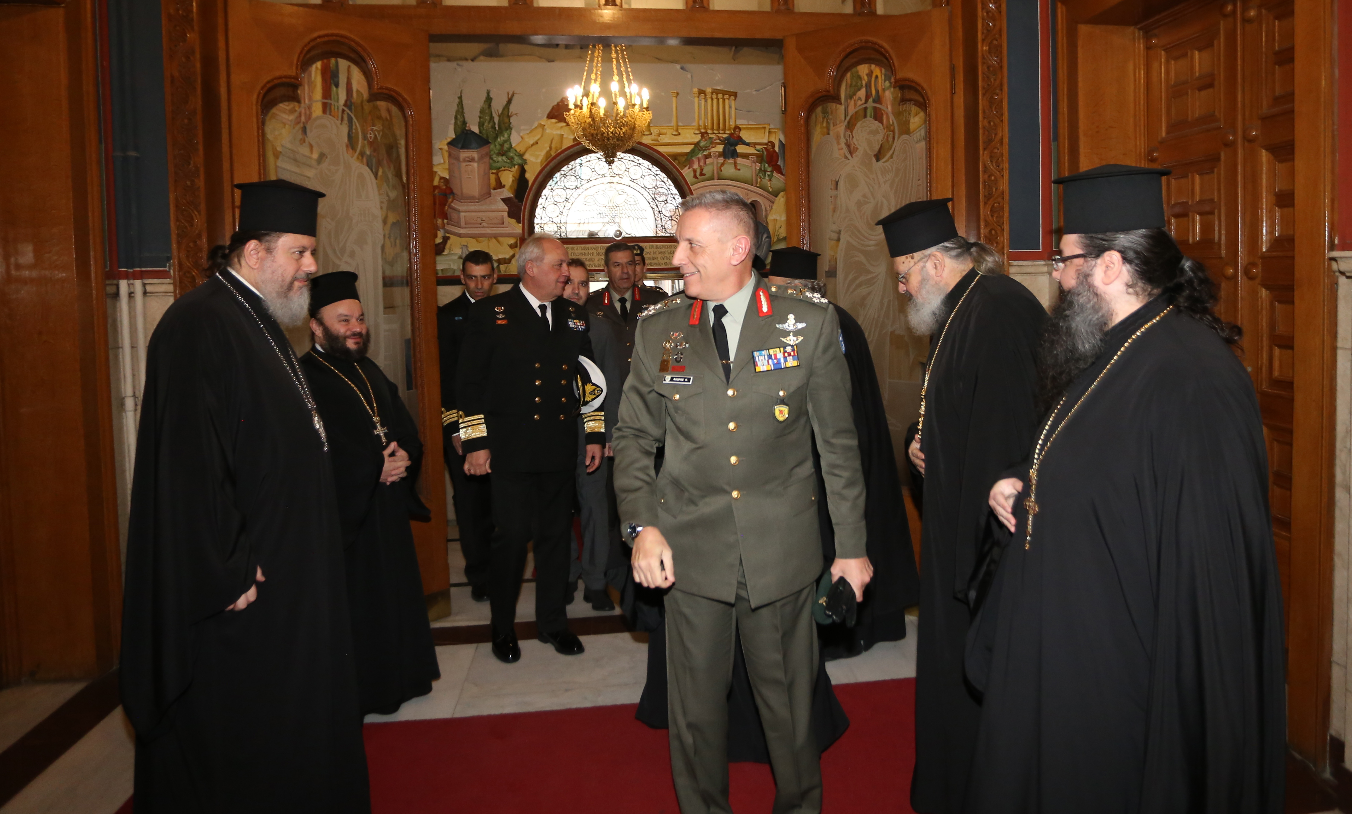 “Οι περισσότεροι από εμάς είμαστε καινούργιοι στις θέσεις μας, κι έπρεπε να ενημερωθούμε, για αυτό και αργήσαμε να έρθουμε να πάρουμε την ευχή σας” δήλωσε ο Αρχηγός ΓΕΕΘΑ και πρόσθεσε ότι “οι ένοπλες δυνάμεις είναι έτοιμες όχι μόνο για αυτή καθ΄αυτή την αποστολή τους, αλλά και για να προάγουν καθημερινά το αγαθό της ασφάλειας στην κοινωνία”.