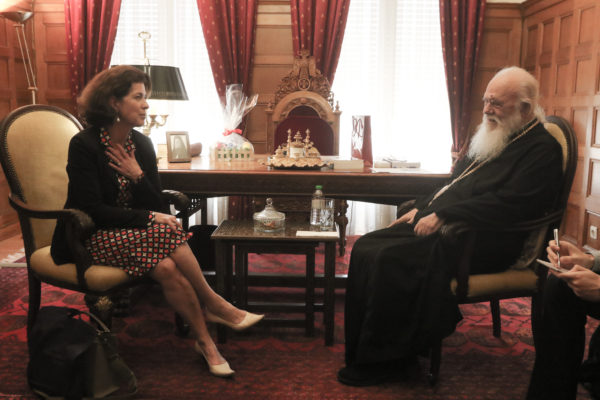 Το μεσημέρι ο Αρχιεπίσκοπος είχε εθιμοτυπική συνάντηση με την Πρέσβη της Γαλλίας στην Ελλάδα κυρία Laurence Auer. Η Πρέσβης ευχαρίστησε τον Αρχιεπίσκοπο για την υποδοχή και αναφέρθηκε στην καλή σχέση που είχε πάντοτε με τους Προκαθήμενους των ορθοδόξων Εκκλησιών, όπου υπηρέτησε ως Πρέσβης, ενώ έκανε λόγο και για τον σημαντικό ρόλο της Εκκλησίας στην παιδεία και την εκπαίδευση. Υπογράμμισε ότι είναι στην διάθεση του Αρχιεπισκόπου για οποιαδήποτε συνεργασία. Ο Αρχιεπίσκοπος καλωσόρισε την Πρέσβη και την ευχαρίστησε για συνάντηση. Αναφέρθηκαν στο Μοναστήρι του Οσίου Λουκά στην Βοιωτία, αλλά και σε άλλα σημαντικά βυζαντινά μνημεία της χώρας.