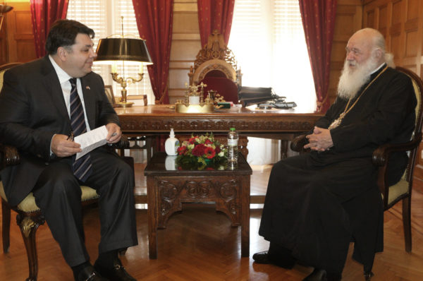 Συνάντηση με τον Μακαριώτατο Αρχιεπίσκοπο Αθηνών και πάσης Ελλάδος κ.κ. Ιερώνυμο είχε σήμερα νωρίς το μεσημέρι ο νέος Πρέσβης των Ηνωμένων Πολιτειών Αμερικής στην Ελλάδα, κ. Τζόρτζ Τσούνης.