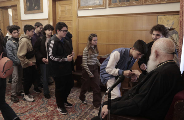 Οι περίπου πενήντα μαθητές συνοδευόμενοι από τον Διευθυντή του Σχολείου και εκπαιδευτικούς στο πλαίσιο εκπαιδευτικής εκδρομής στο ιστορικό κέντρο της Αθήνας εξέφρασαν την επιθυμία να συναντηθούν με τον Αρχιεπίσκοπο, να συνομιλήσουν μαζί του και να πάρουν την ευχή του, ενώ νωρίτερα είχαν επισκεφθεί και το Αρχοντικό των Μπενιζέλων, το σπίτι της Αγίας Φιλοθέης στην Πλάκα.