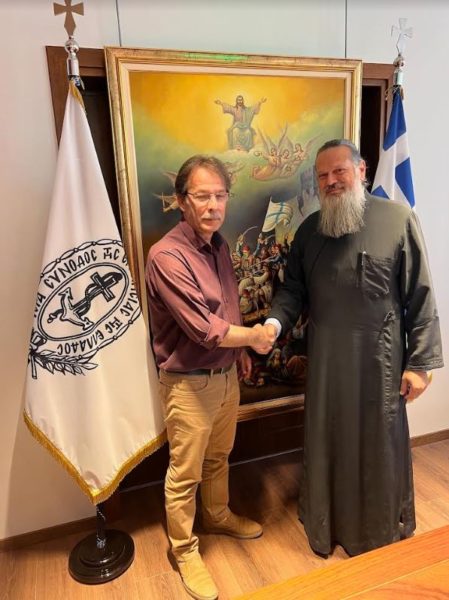 Συνάντηση του Δημάρχου Κερατσινίου-Δραπετσώνας κ. Χρήστου Βρεττάκου και του Γενικού Διευθυντή της Ε.Κ.Υ.Ο. Αρχιμανδρίτη Δρ Νικοδήμου Φαρμάκη πραγματοποιήθηκε σήμερα στο Συνοδικό Μέγαρο της Εκκλησίας της Ελλάδος κατόπιν προσκλήσεως της Ε.Κ.Υ.Ο.