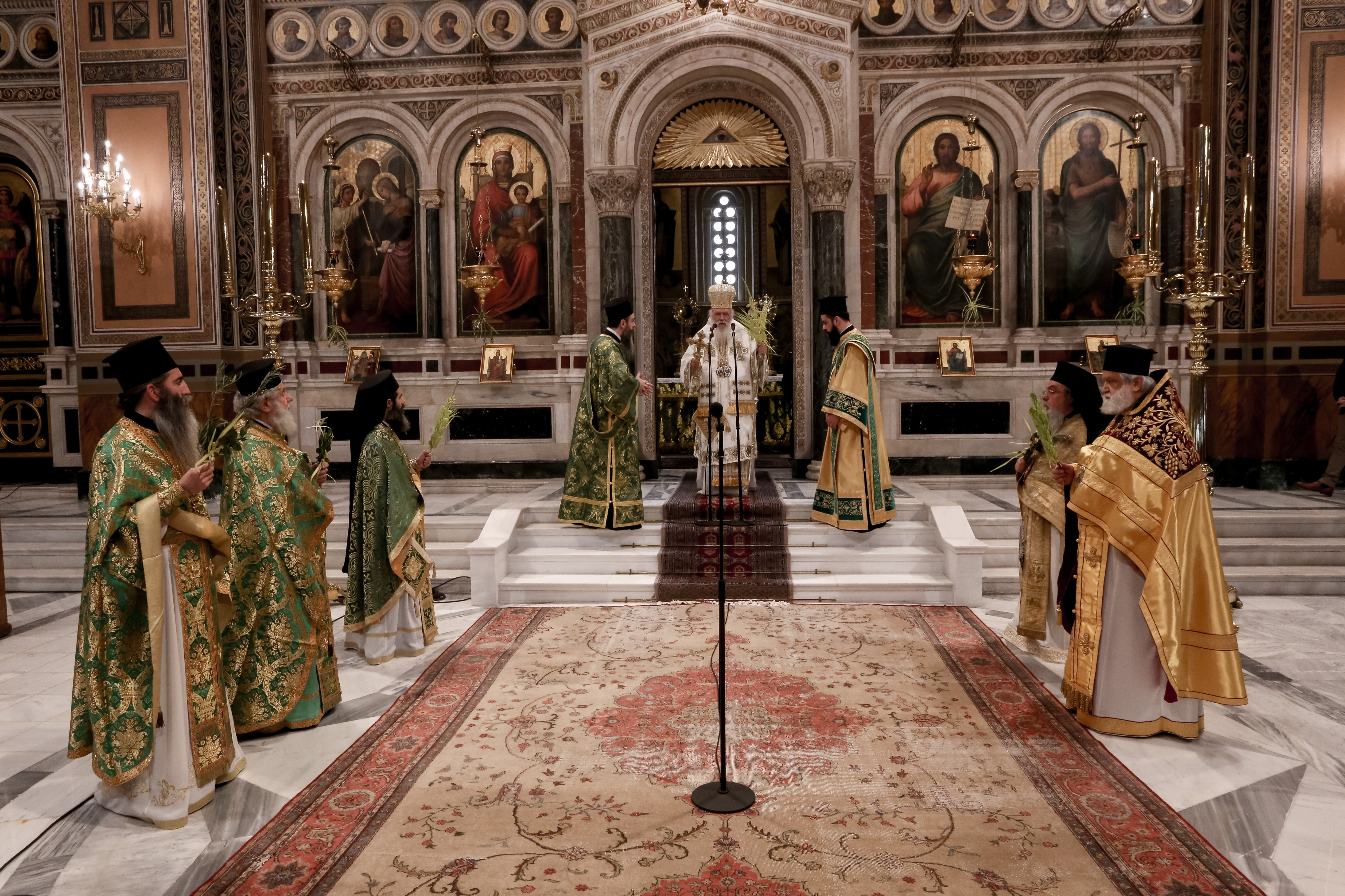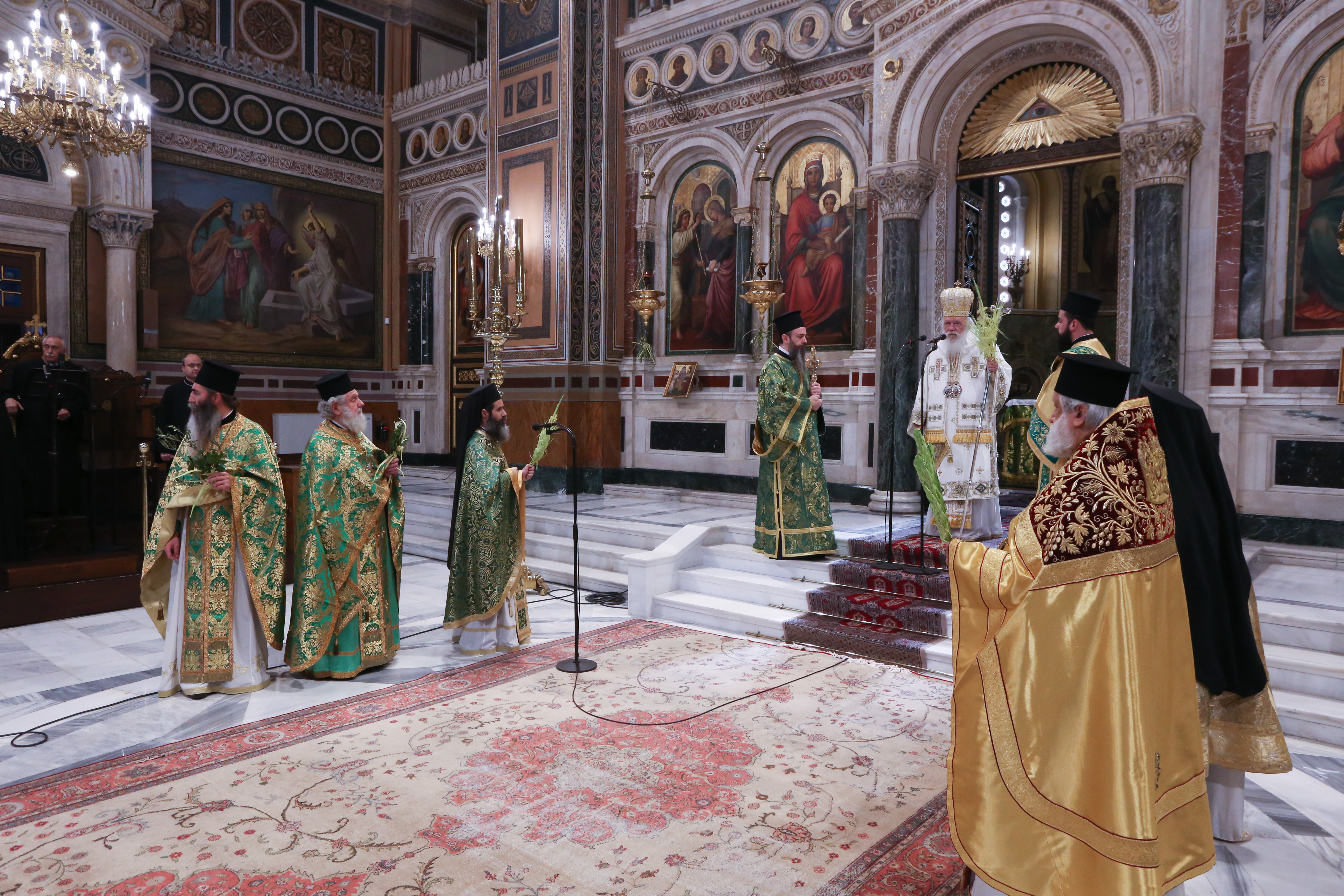 Στην Αρχιερατική Θ. Λειτουργία στον Καθεδρικό Ι. Ναό των Αθηνών προεξήρχε την Κυριακή των Βαΐων, ο Μακαριώτατος Αρχιεπίσκοπος Αθηνών και Πάσης Ελλάδος κ.κ. Ιερώνυμος.