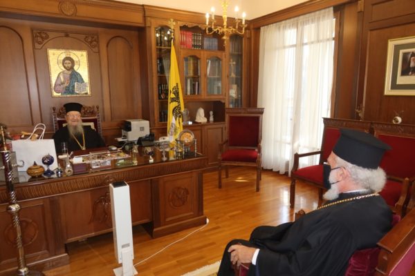 Προ της αναχωρήσεώς του για την Ερμούπολη, ο Σεβασμιώτατος Μητροπολίτης Σύρου κ. Δωρόθεος Β΄ επισκέφθηκε στο Γραφείο του τον Σεβασμιώτατο Μητροπολίτη Θεσσαλονίκης κ. Άνθιμο, τον οποίο ευχαρίστησε για την παρασχεθείσα άδεια και με τον οποίο αντήλλαξαν απόψεις επί εκκλησιαστικών θεμάτων και ευχές.