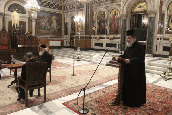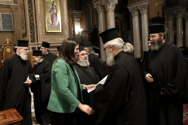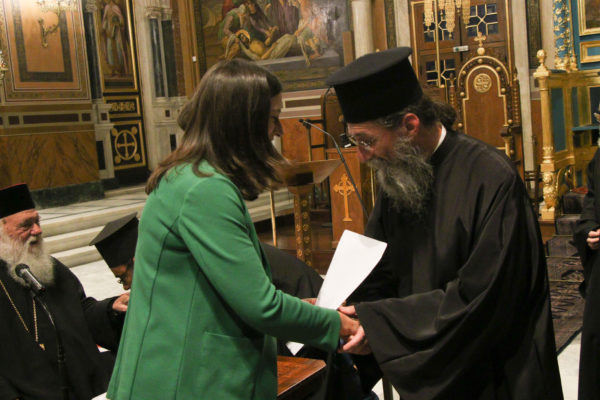 Στο τέλος της Συνάξεως η Υπουργός Παιδείας μοίρασε στους ιερείς, συμβολικά, τα Προεδρικά Διατάγματα.