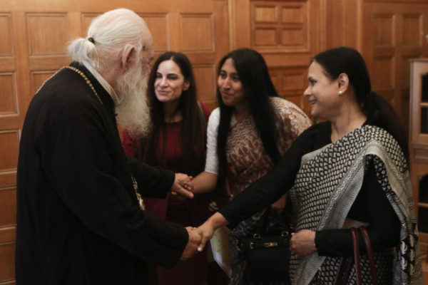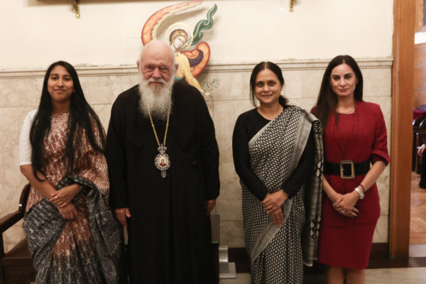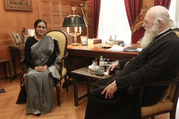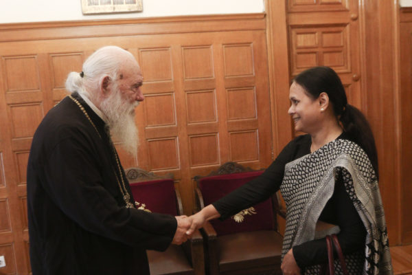 Εθιμοτυπική συνάντηση με την Πρέσβειρα του Μπαγκλαντές στην Ελλάδα Nahida Rahman Shumona είχε σήμερα το πρωί ο Αρχιεπίσκοπος Αθηνών και πάσης Ελλάδος κ.κ. Ιερώνυμος. Ο Μακαριώτατος καλωσόρισε την Πρέσβειρα και τους συνεργάτες της και μίλησαν για διάφορα θέματα κοινού ενδιαφέροντος. Στην συνάντηση παρών ήταν και ο Πρωτοσύγκελος της Αρχιεπισκοπής, Αρχιμανδρίτης Βαρνάβας Θεοχάρης.