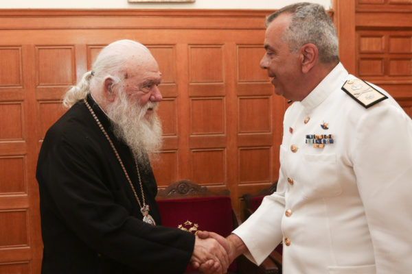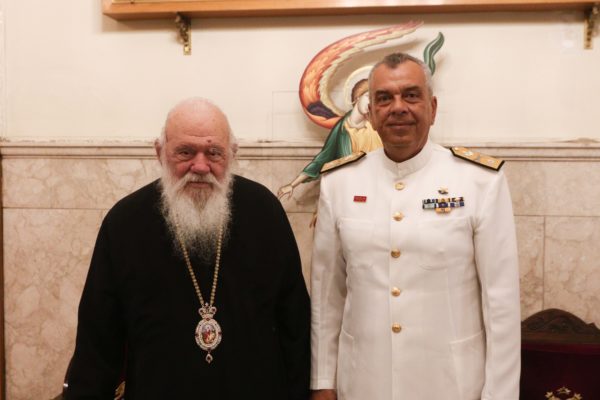 Το μεσημέρι, τον Αρχιεπίσκοπο επισκέφθηκε ο Διοικητής του Ναυστάθμου Σαλαμίνος, Αρχιπλοίαρχος κ. Σπύρος Μαντής.