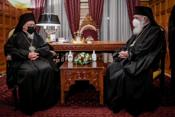 Δείτε φωτογραφικά στιγμιότυπα από την συνάντηση του Παναγιωτάτου Οικουμενικού Πατριάρχου κ.κ. Βαρθολομαίου με τον Μακαριώτατο Αρχιεπίσκοπο Αθηνών και πάσης Ελλάδος κ. Ιερώνυμο, στην Ιερά Αρχιεπισκοπή Αθηνών, το απόγευμα του Σαββάτου, 20 Νοεμβρίου 2021.