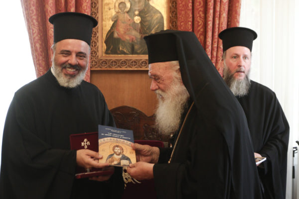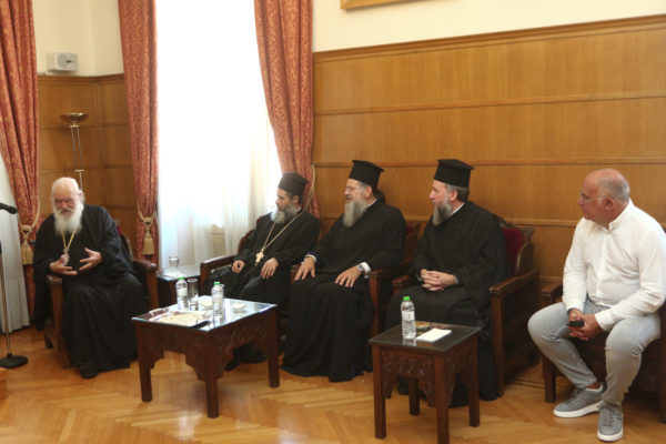 Συνάντηση με τα μέλη της αντιπροσωπείας της Ιεράς Αρχιεπισκοπής Αμερικής για τα ζητήματα του Ταμείου Ανακούφισης πυροπαθών Ελλάδος που η Αρχιεπισκοπή Αμερικής συνέστησε είχε σήμερα το μεσημέρι ο Αρχιεπίσκοπος Αθηνών και πάσης Ελλάδος κ.κ. Ιερώνυμος.