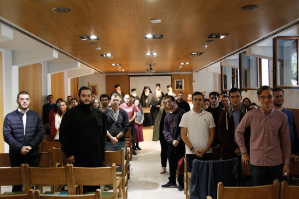 Οι Φοιτητές του Τμήματος Θεολογίας βρέθηκαν το μεσημέρι στο Συνοδικό Μέγαρο, όπου αμέσως μετά τις εργασίες της ΔΙΣ ο Καθηγητής τους, Συνοδικός Μητροπολίτης Περιστερίου τους ξενάγησε στους χώρους. Πριν την έναρξη του μαθήματος Χαιρετισμό στους φοιτητές απηύθυναν ο Αρχιεπίσκοπος Αθηνών και πάσης Ελλάδος κ. Ιερώνυμος και οι Μητροπολίτες Μάνης κ. Χρυσόστομος, Φθιώτιδος κ. Συμεών και Λαρίσης και Τυρνάβου κ. Ιερώνυμος.