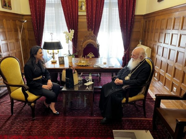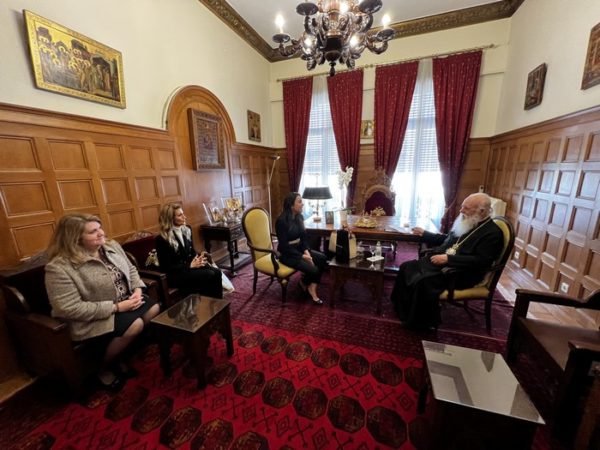 Συνάντηση με την Γραμματέα Οικογενειακής Πολιτικής και Ισότητας Φύλων της Ν.Δ. κυρία Χρυσαυγή Ατσιδάκου και την Συντονίστρια Αττικής της Γραμματείας κυρία Δέσποινα Αχματιώτη είχε το πρωί της Πέμπτης 27 Απριλίου 2023 ο Αρχιεπίσκοπος Αθηνών και πάσης Ελλάδος κ.κ. Ιερώνυμος.