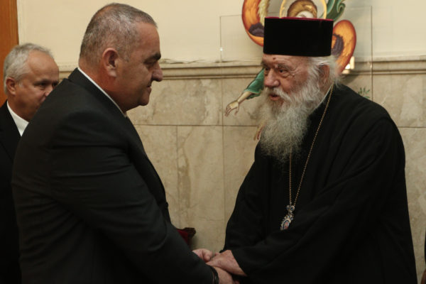 Από την πλευρά του ο Αρχιεπίσκοπος τόνισε: «Είμαι χαρούμενος και συγκινημένος, γιατί οι προσπάθειές μας για έναν καλό λόγο, μια καλή πράξη, ώστε να έρθει το αποτέλεσμα αυτό, είναι ένας καρπός καλών θελησεων από πολλά μέρη. Προσωπικά θεώρησα ότι είχα και έχω υποχρέωση για μια τέτοια συμπεριφορά. Υπάρχουν λόγοι ιστορίας και συμπαθείας, αγαπούμε πολύ την γειτονική μας Αλβανία. Ευτυχώς φαίνεται πως η εποχή των διαιρεσεων αφήνει χώρο για καλύτερες ενέργειες και πράξεις. Ο ερχομός του κ. Μπελέρη είναι μια ευκαιρία ανανεώσεων των σχεσεων μας».