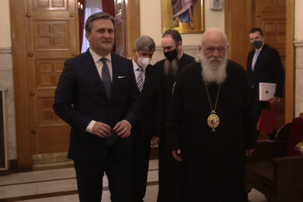Ο Αρχιεπίσκοπος καλωσόρισε τον υπουργό και την συνοδεία του και αναφέρθηκε στην στενή συνεργασία των δύο χωρών τονίζοντας πως ένα κοινό στοιχείο της ταυτότητας των δύο λαών είναι η ορθόδοξη πίστη. Ανέφερε, ότι πολλοί συνεργάτες της Εκκλησίας της Σερβίας έχουν σπουδάσει στην Ελλάδα κάνοντας λόγο για κοινές ρίζες και κοινούς αγώνες. Μίλησε, επίσης, για την ανθρωπιστική βοήθεια και την συμπαράσταση της Ελλάδας προς τον Σερβικό λαό και επεσήμανε ότι η συνεργασία πρέπει να είναι συνεχής και διαρκής. Έκανε, ακόμη, αναφορά σε μία επικοινωνία που είχε με τον μακαριστό Πατριάρχη Σερβίας, ο οποίος του είχε ζητήσει βοήθεια αναφορικά με το Κόσοβο και τότε ο Αρχιεπίσκοπος είχε εκφράσει την συμπαράστασή του σημειώνοντας πως οι Έλληνες πιστεύουν πως αυτό που είναι ο Παρθενώνας για την Αθήνα είναι το Κόσοβο για τη Σερβία.
