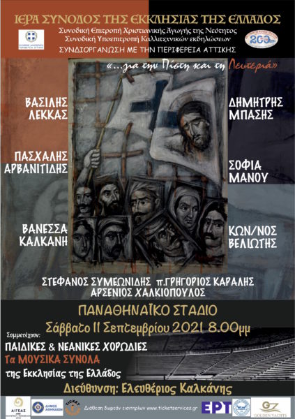 Mεγαλειώδη συναυλία με τραγούδια σύγχρονων Ελλήνων συνθετών, αφιερωμένα στην επέτειο των 200 χρόνων από την Επανάσταση του 1821, διοργανώνει η Εκκλησία της Ελλάδος σε συνδιοργάνωση με την Περιφέρεια Αττικής, στο Καλλιμάρμαρο Παναθηναϊκό Στάδιο, το ερχόμενο Σάββατο 11 Σεπτεμβρίου 2021 στις 8:00 το βράδυ.