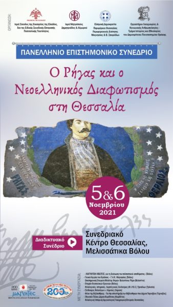 Στο πλαίσιο των εορτασμών για τα 100 χρόνια από την Ελληνική Επανάσταση θα πραγματοποιηθεί διαδικτυακά το Πανελλήνιο Επιστημονικό Συνέδριο με θέμα «Ο Ρήγας και ο Νεοελληνικός Διαφωτισμός στη Θεσσαλία» στις 5 και 6 Νοεμβρίου 2021 στο Συνεδριακό Κέντρο Θεσσαλίας στα Μελισσάτικα Βόλου.