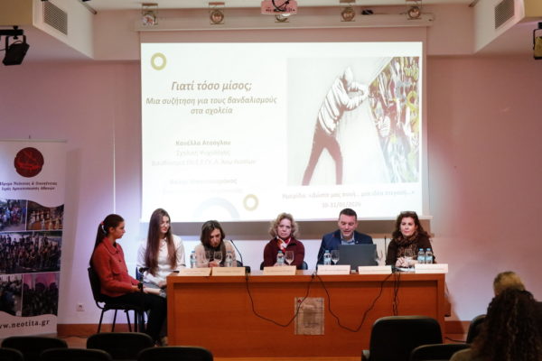 Η Α’ Συνεδρία με θέμα «Γιατί τόσο μίσος; Μια συζήτηση για τους βανδαλισμούς στα σχολεία», την οποία συντόνισε η κα. Δέσποινα Σπύρου, Δασκάλα, περιελάμβανε εισηγήσεις της κας. Κανέλλας Ατσόγλου, Σχολικής Ψυχολόγου -Διευθύντριας ΕΝΕΓΥΛ Άνω Λιοσίων, του κ. Θαλή Μπουτσιαράκου, Ψυχοθεραπευτή – Κοινωνικού Λειτουργού, της κας. Φωτεινής Μηλιώνη, Δρ. Νομικής – Διευθύντριας ΕΠΑΝΟΔΟΥ ΝΠΙΔ για την επανένταξη των φυλακισμένων, της δ. Γεσμήρα Αλιγιάι, Μαθήτριας Γ ́Λυκείου ΓΕΛ Κηφισιάς και της δ. Ευαγγελίας Ελένης Αρζουμανίδου, Μαθήτριας Β ́ Λυκείου ΓΕΛ Θρακομακεδόνων.