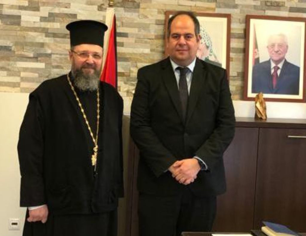 Τις προηγούμενες ημέρες μετά από σχετική πρωτοβουλία και πρόσκληση του Πρέσβεως της Διπλωματικής Αντιπροσωπείας της Παλαιστίνης στην Ελλάδα κ. YESSEF VICTOR DORKHOM πραγματοποιήθηκε, στα Γραφεία της Διπλωματικής Αντιπροσωπείας στην Αθήνα, συνάντηση γνωριμίας με τον Aρχιμναδρίτη π. Σπυρίδωνα Κατραμάδο, Γραμματέα της Ι. Συνόδου της Εκκλησίας της Ελλάδος.