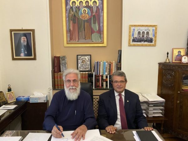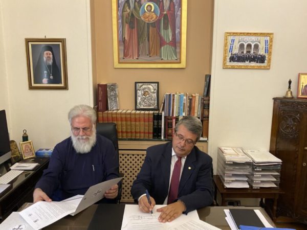 Παρών στην υπογραφή ήταν και ο Αρχιμανδρίτης Θεολόγος Αλεξανδράκης, Διευθυντής του Ι.Π.Ε.