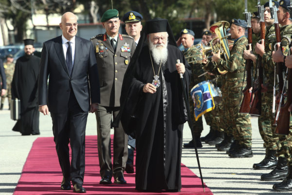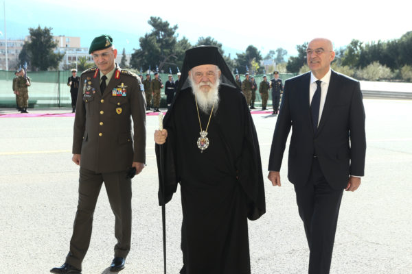 Τον Αρχιεπίσκοπο υποδέχτηκε ο Υπουργός Εθνικής Άμυνας κ. Νίκος Δένδιας, οι Αρχηγοί των Ενόπλων Δυνάμεων, το στρατιωτικό και πολιτικό προσωπικό του Υπουργείου, ενώ τιμές απέδωσε στρατιωτική μπάντα.