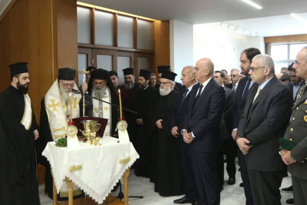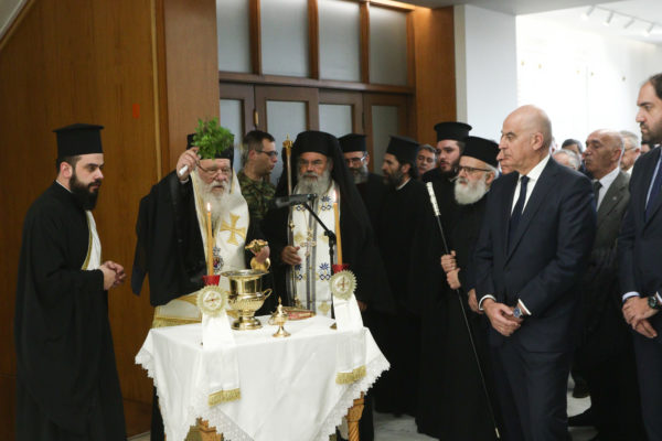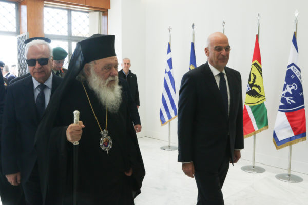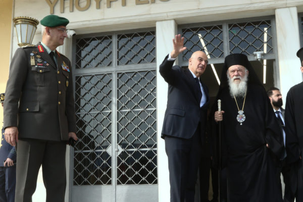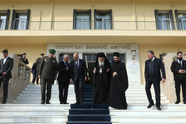 Τα εγκαίνια της ανακαινισμένης εισόδου του Υπουργείου Εθνικής Άμυνας τέλεσε ο Αρχιεπίσκοπος Ιερώνυμος