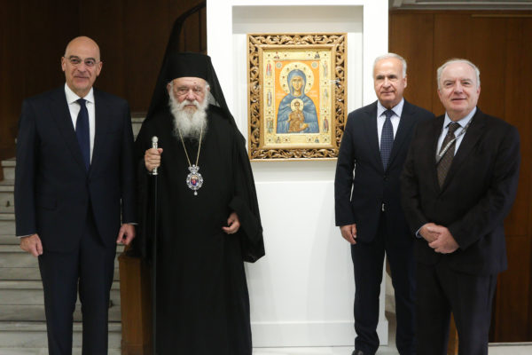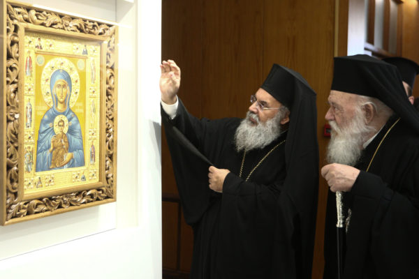 Μετά τον αγιασμό, ο Διευθυντής της Θρησκευτικής Υπηρεσίας του ΓΕΕΘΑ, του Σώματος των Στρατιωτικών Ιερέων, Αρχιμανδρίτης Μελέτιος Κουράκλης, παρουσίασε στον Αρχιεπίσκοπο την εφέστιο εικόνα των Ενόπλων Δυνάμεων: Υπέρμαχο Στρατηγό, Παναγία τη Νικοποιό, που θα κοσμεί πλέον την κεντρική είσοδο του Υπουργείου.