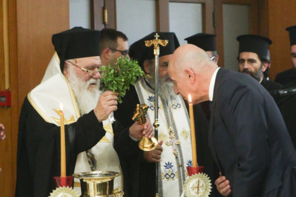 Τον Αρχιεπίσκοπο συνόδευε ο Αρχιδιάκονος Δημήτριος Φωκιανός.