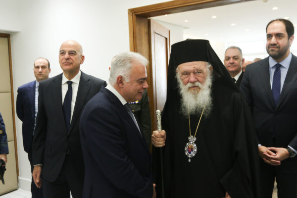 «Να συνεργαστούν οι δύο παράγοντες, ο ανθρώπινος και ο θρησκευτικός για το καλό της Πατρίδας μας», τόνισε ο Αρχιεπίσκοπος κ.κ. Ιερώνυμος, ευχαριστώντας τον Υπουργό για την πρόσκληση στο Υπουργείο.