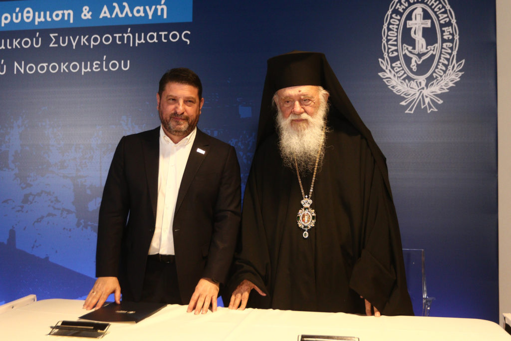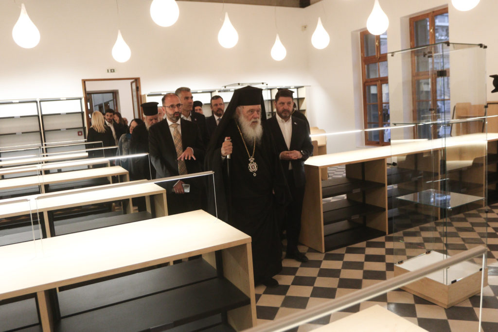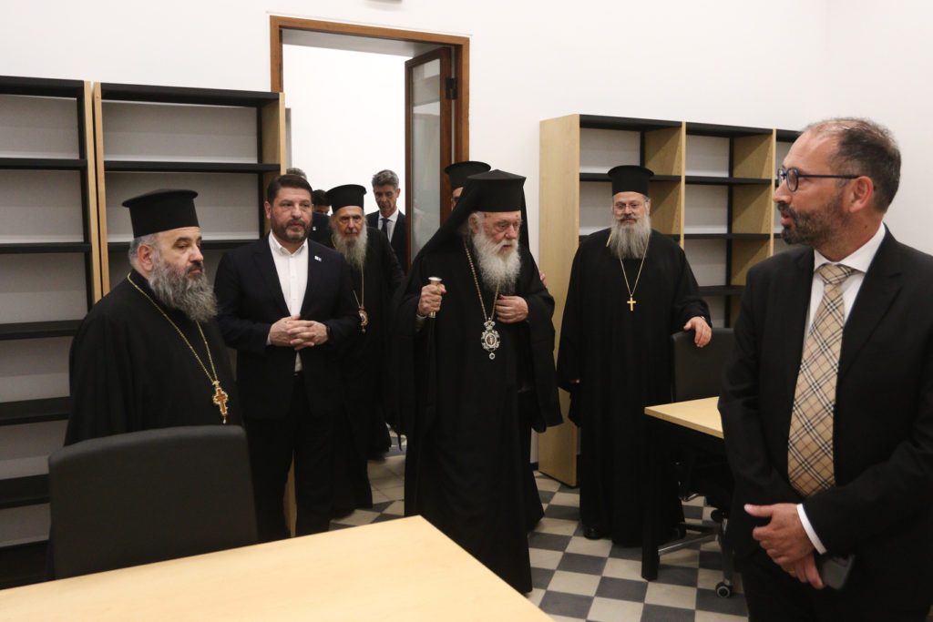 Μετά τους χαιρετισμούς υπεγράφη το Πρωτόκολλο παράδοσης – παραλαβής από τον Μακαριώτατο Αρχιεπίσκοπο Αθηνών και πάσης Ελλάδος κ. Ιερώνυμο και τον Περιφερειάρχη κ. Ν. Χαρδαλιά, οι οποίοι ακολούθως περιηγήθηκαν στα ανακαινισθέντα κτήρια.