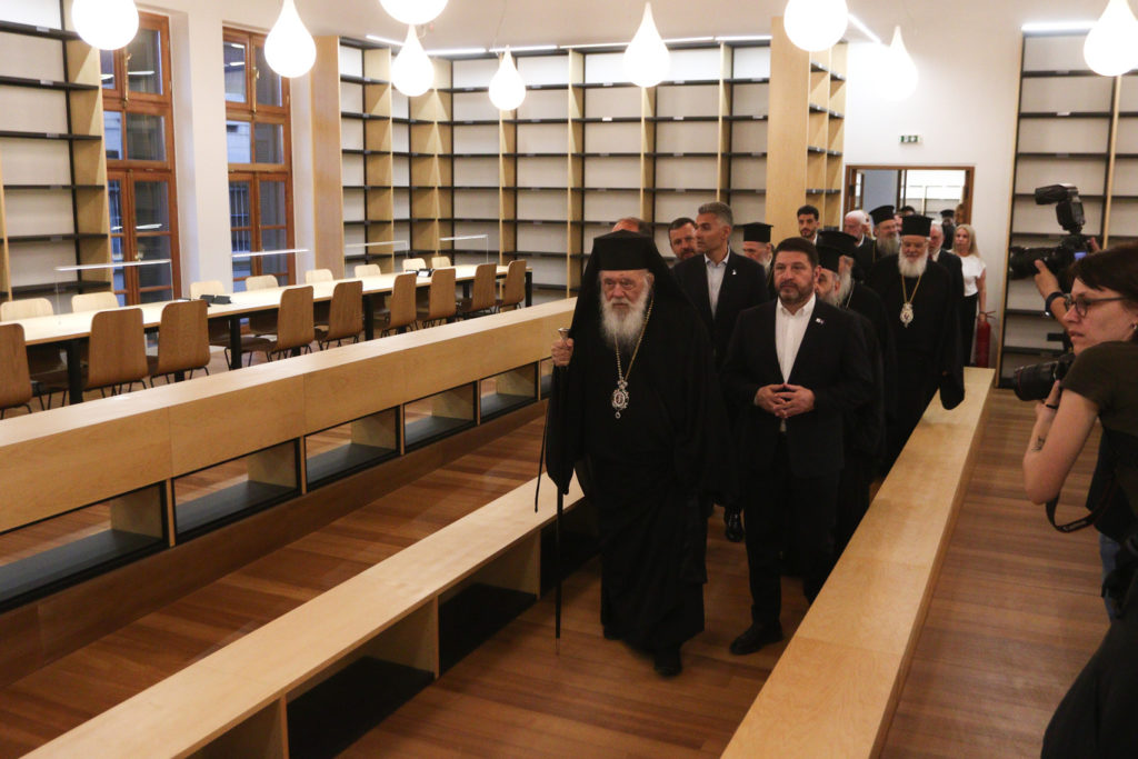Ο Μακαριώτατος, στον χαιρετισμό που απηύθυνε μετά την ακολουθία του Αγιασμού, έκανε μια σύντομη αναδρομή στην ιστορία των εν λόγω κτηρίων και αφού ευχαρίστησε όσους συνέβαλαν στην ολοκλήρωση του έργου, ανέφερε τα εξής: «Με βαθειά συγκίνηση και αίσθημα ευγνωμοσύνης, στεκόμαστε σήμερα μπροστά σε ένα έργο, το οποίο δεν είναι απλώς μία αποκατάσταση κτηρίων, αλλά μία πράξη σεβασμού προς την Ιστορία και τον Πολιτισμό μας. Τα τρία αυτά κτήρια, με την αρχιτεκτονική τους ευγένεια και τον ιστορικό τους συμβολισμό, γίνονται σήμερα τόπος γνώσης, μελέτης και δημιουργίας, συνεχίζοντας να αφηγούνται την πορεία του Έθνους, την πίστη της Εκκλησίας και την αγωνία του Λαού μας για πρόοδο εδραιωμένη στην Παράδοση. Η νέα τους αποστολή τα καθιστά φορείς παιδείας, πολιτισμού και πνευματικής αναβαθμίσεως. Ευχόμαστε να γίνουν φάροι πνευματικής καλλιέργειας και ανοιχτοί τόποι συνάντησης για τις επερχόμενες γενεές, εμπνέοντας σεβασμό στο παρελθόν και ελπίδα για το αύριο».