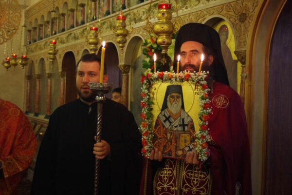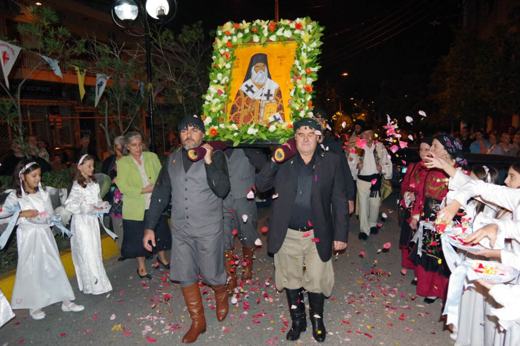 Με την συνοδεία της φιλαρμονικής της Ελληνικής Αστυνομίας, τα αγήματα των συλλόγων Κρητών και Ηπειρωτών Ηλιουπόλεως, ιερόπαιδες και κοπέλες του κατηχητικού, συγκρότησαν μαζί με τον επίσκοπο, τους κληρικούς, τον δήμαρχο Ηλιουπόλεως Γεώργιο Χατζηδάκη, τους αντιδημάρχους Ιωάννη Ατζινά, Παναγιώτη Βιδάλη, Ιωάννη Πούλο και Κωνσταντίνο Σεφτελή, τους δημοτικούς συμβούλους Γαβριήλ Αραμπατζή επικεφαλής δημοτικής παρατάξεως και Χρήστο Καλαρύτη και τον φιλάγιο λαό, την ιερά πομπή. Στην επιστροφή, ο ιερατικώς προϊστάμενος ευχαρίστησε τους πάντες και αναφέρθηκε στην αναγραφή του επικεφαλής της νέας Αυτοκεφάλου Εκκλησίας της Ουκρανίας, μητροπολίτου Κιέβου και πάσης Ουκρανίας Επιφανίου, στα δίπτυχα από τον πάπα και πατριάρχη Αλεξανδρείας Θεόδωρο Β΄, παραμονή της εορτής του μεγάλου αγίου της υπομονής. Ο επίσκοπος αφού μετέφερε τις ευχές του αρχιεπισκόπου Αθηνών και πάσης Ελλάδος Ιερωνύμου μίλησε για τον άγιο Νεκτάριο και τα χαρακτηριστικά της ζωής του. Ακολούθησε η ιερά παράκληση, απόδειπνο και χαιρετισμοί προς τον Άγιο Νεκτάριο.