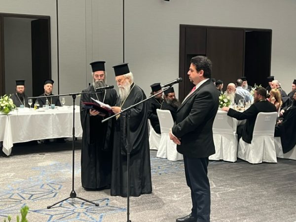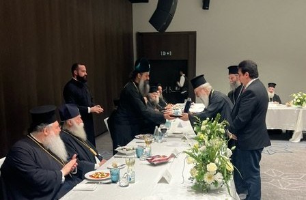 Κατά το επίσημο γεύμα, ο Μητροπολίτης Σπάρτης μετέφερε τις ευχές του Μακαριωτάτου Αρχιεπισκόπου Αθηνών και πάσης Ελλάδος κ.κ. Ιερωνύμου και της Ιεράς Συνόδου, ενώ πρόσφερε στο νέο Πατριάρχη, εκ μέρους της Εκκλησίας της Ελλάδος, ένα σετ πατριαρχικών εγκολπίων.