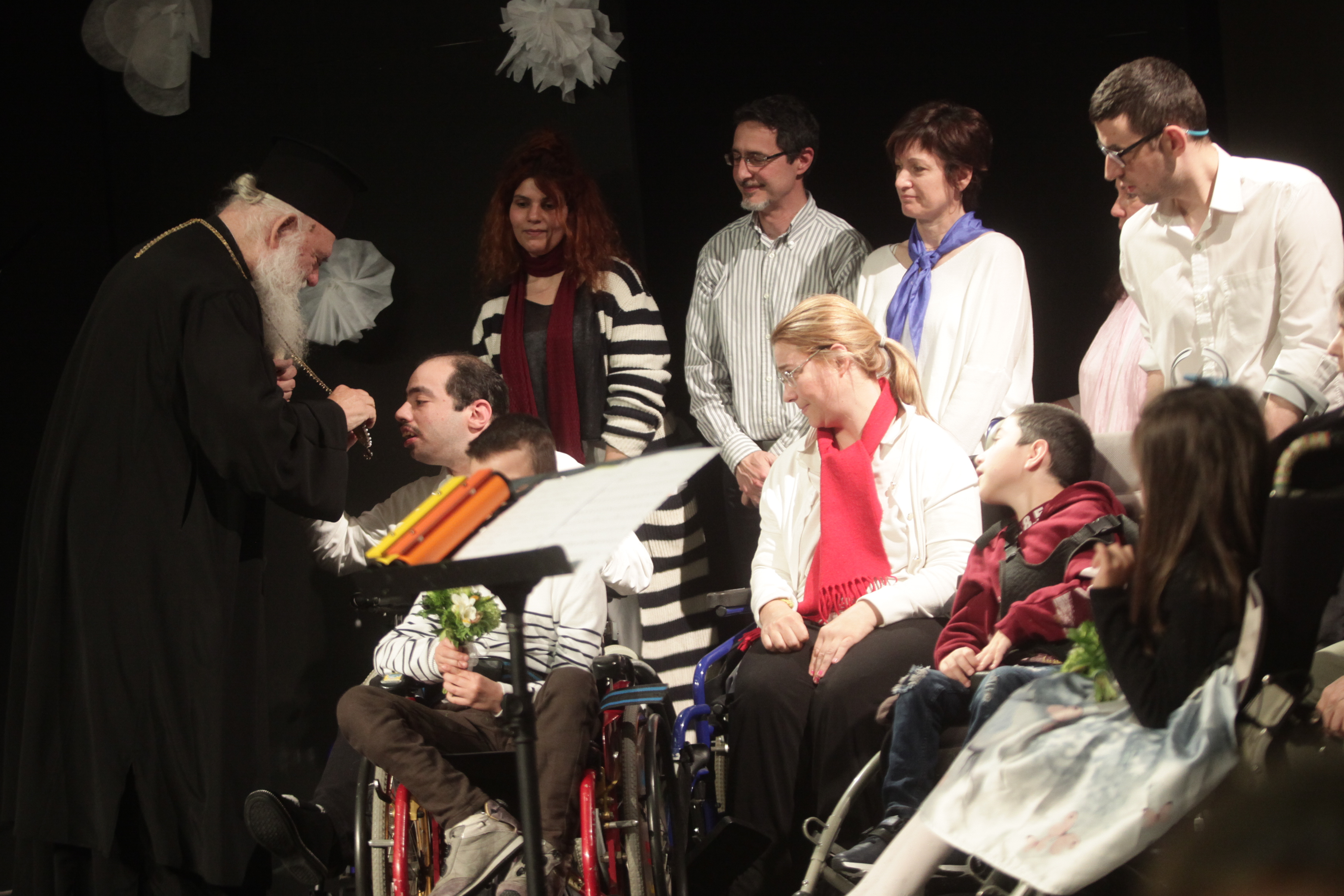 Τον Μακαριώτατο υποδέχθηκε η πρόεδρος του ιδρύματος κ.Δάφνη Οικονόμου, οι γονείς και τα παιδιά. Ξεναγήθηκε σε όλους τους χώρους και τις εγκαταστάσεις του κτηρίου. Εν συνεχεία η χορωδία Κέντρου έψαλλε στο αμφιθέατρο ύμνους.