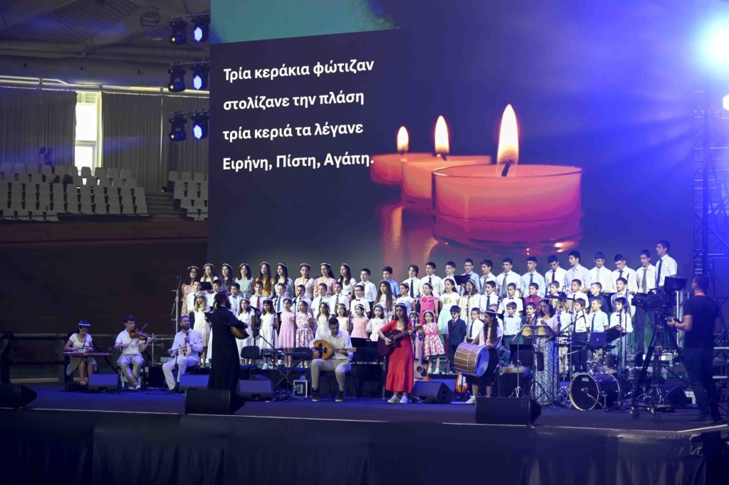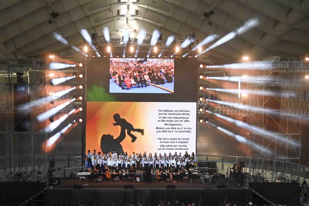 Στη συνέχεια τη σκυτάλη ανέλαβαν οι παρουσιαστές της εκδήλωσης, Γιώργος Τσιάκκας και Χριστίνα Παυλίδου, γνωστοί συντελεστές της σειράς «Άγιος Παΐσιος: Από τα Φάρασα στον ουρανό». Το πρόγραμμα περιελάμβανε επίκαιρους ύμνους από τον Βυζαντινό Χορό «Άδοντες και ψάλλοντες» της Ιεράς Μητροπόλεως Κηφισίας, παραδοσιακούς χορούς από τη χορευτική ομάδα των εκπαιδευτηρίων “Θεομήτωρ” και τον χορευτικό όμιλο «Ειρήνη» της Ιεράς Μητροπόλεως Νέας Ιωνίας, Φιλαδελφείας, Ηρακλείου και Χαλκηδόνος αλλά και πολυμελείς νεανικές χορωδίες όπως αυτή του Ι. Ναού Μεταμορφώσεως Βριλησσίων που με το τραγούδι “Ελπίδα” έστειλε με τον καλύτερο τρόπο το μήνυμα ότι η ελπίδα μας είναι τα παιδιά!Και τα εκπαιδευτήρια «Η Ελληνική Παιδεία» συμμετείχαν με εντυπωσιακές χορωδίες αλλά και μια σειρά από θεατρικά δρώμενα, αναδεικνύοντας την αξία της οικογένειας αλλά και τις δυσκολίες που αντιμετωπίζουν οι σχέσεις γονέων και παιδιών, οι οποίες μπορούν να υπερνικηθούν μόνο με την αγάπη.