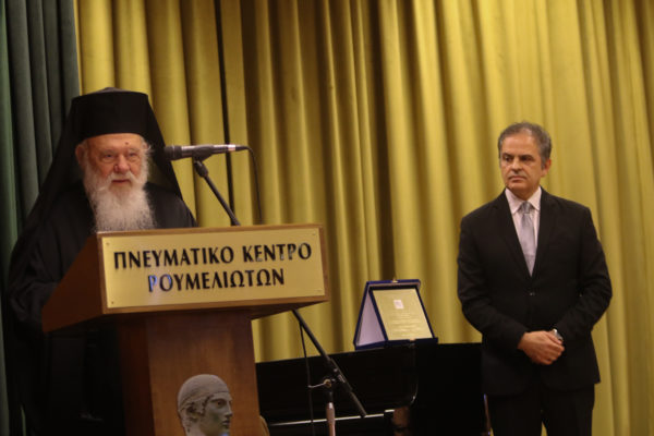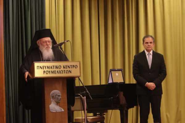 Η βράβευση του Μακαριωτάτου πραγματοποιήθηκε στο πλαίσιο των εκδηλώσεων που διοργάνωσε το Πνευματικό Κέντρο Ρουμελιωτών, για να τιμήσει την Παναγία την Προυσιώτισσα, ως προστάτιδα της Ρούμελης και του Κοινωφελούς Ιδρύματος.