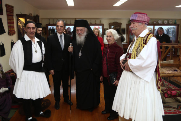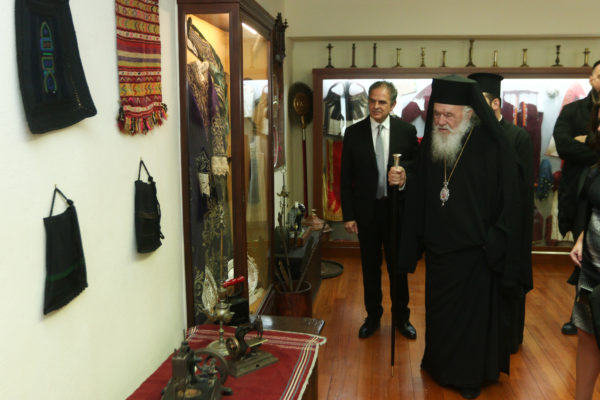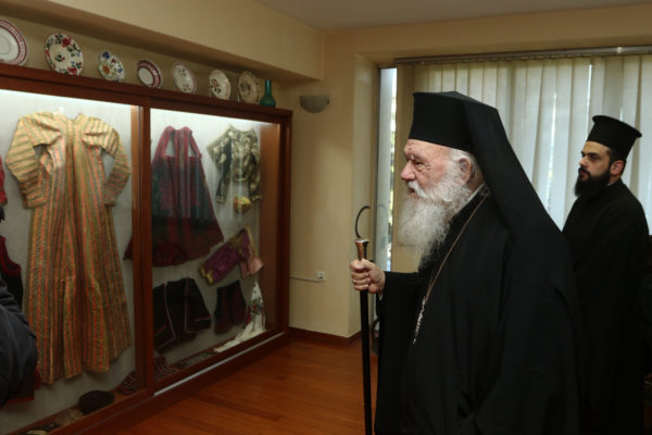 Μετά την εκδήλωση ο Αρχιεπίσκοπος ξεναγήθηκε στο Λαογραφικό Μουσείο του Π.Κ.Ρ.