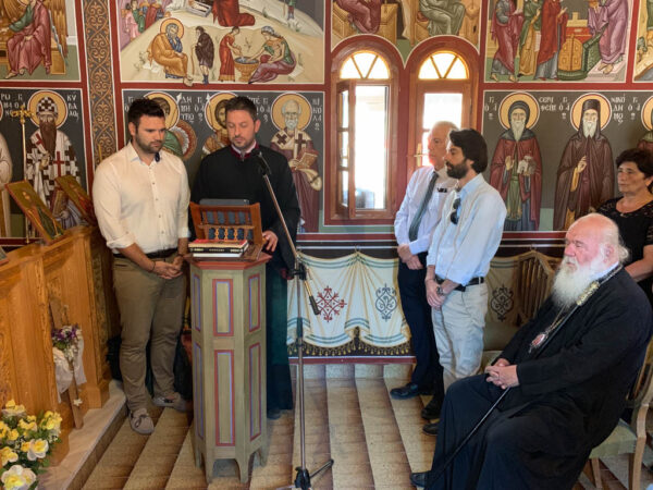 Ο Μακαριώτατος έδωσε την ευλογία του σε όλους τους πιστούς, ενώ απηύθυνε εγκάρδιες πατρικές ευχές. Κάλεσε μάλιστα «όλες και όλους σε αγωνιστικότητα προκειμένου να προχωρήσουμε μπροστά όχι μόνο σε προσωπικό επίπεδο, αλλά και συλλογικά και εθνικά ακόμη και παγκόσμια». Ο Θεοφιλέστατος κ. Συμεών στο σύντομο κήρυγμα του, που προηγήθηκε, αφού ευχαρίστησε τον Σεβασμιώτατο Μητροπολίτη Θηβών και Λεβαδείας κ. Γεώργιο για την άδεια και ευλογία να τελέσει την Θεία Λειτουργία, αναφέρθηκε στην ευχαριστιακή σχέση των πιστών με τους Αγίους και στο γιατί θα πρέπει οι χριστιανοί να ευχαριστούν συνεχώς τους Αγίους της Εκκλησίας μας.
