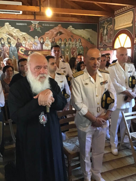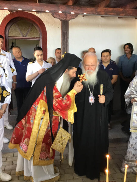 Ο Μακαριώτατος στο εόρτιο γεύμα που επακολούθησε στον πλησίον της νήσου οικισμό Καρυώτης – παραλία Κυριακίου ευχαρίστησε ιδιαίτερα τους διακονούντες την Μονή πατέρες και εξεχόντως τον ακαταπόνητο αρωγό και άγρυπνο συμπαραστάτη της Μονής και της Νήσου κ. Ιωάννη Μπενέκο και την ευλογημένη πολυμελή οικογένεια του.