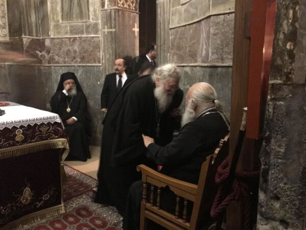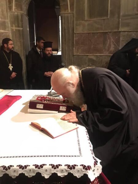 Στο εσπερινό χοροστάτησε ο Αρχιγραμματέας της Ιεράς συνόδου Επίσκοπος Ωρεων κ. Φιλόθεος ενώ παρευρέθηκαν αρκετοί ιεράρχες για να ευχηθούν στον Αρχιεπίσκοπο Ιερώνυμο για την επέτειο της εκλογής του στον Αρχιεπισκοπικό Θρόνο.
