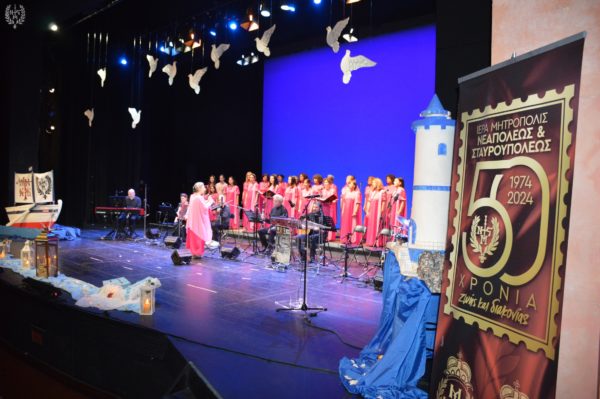 Με την παρουσία τριών Αρχιερέων, του Παναγιώτατου Μητροπολίτη Θεσσαλονίκης κ. Φιλοθέου, του Σεβασμιώτατου Μητροπολίτη Νεαπόλεως και Σταυρουπόλεως κ. Βαρνάβα, του Σεβασμιώτατου Μητροπολίτη Νέας Κρήνης και Καλαμαριάς κ. Ιουστίνου πραγματοποιήθηκε την Τρίτη 4 Ιουνίου 2024 στην αίθουσα Σωκράτης Καραντινός της Μονής Λαζαριστών το 1ο Φεστιβάλ Χριστιανικού Τραγουδιού, στο πλαίσιο του εορτασμού των 50 χρόνων από την ίδρυση των Μητροπόλεων Νεαπόλεως και Σταυρουπόλεως και Ν. Κρήνης και Καλαμαριάς.