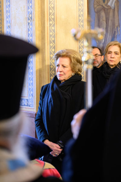 Στην Εξόδιο Ακολουθία παρέστησαν, μεταξύ άλλων, η τέως Βασίλισσα Άννα Μαρία, η Βασίλισσα Σοφία της Ισπανίας, ο Βασιλιάς Φίλιππος ΣΤ’ με τη σύζυγό του Λετίθια, οι Πρίγκιπες Παύλος, Νικόλαος και Φίλιππος, η Αικατερίνη της Σερβίας, η Λαίδη Κίνγκστον, καθώς και εκπρόσωποι της Ελληνικής Πολιτείας, με επικεφαλής τον Αντιπρόεδρο της κυβέρνησης Κωστή Χατζηδάκη και την Υπουργό Πολιτισμού Λίνα Μενδώνη.