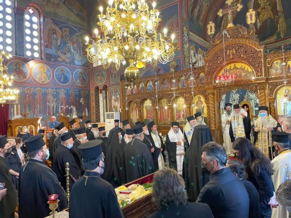 Της Εξοδίου Ακολουθίας συγχοροστάτησαν οι Σεβ. Μητροπολίτες: Μονεμβασίας και Σπάρτης κ. Ευστάθιος, Νικαίας κ. Αλέξιος, Κιασαριανής, Βύρωνος και Υμμητού κ. Δανιήλ και Μεσσηνίας κ. Χρυσόστομος.
