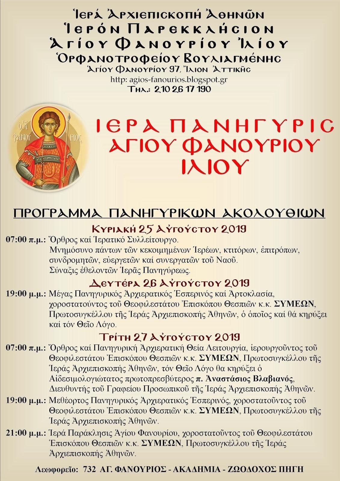 Τριήμερη Πανήγυρις Αγίου Φανουρίου Ιλίου