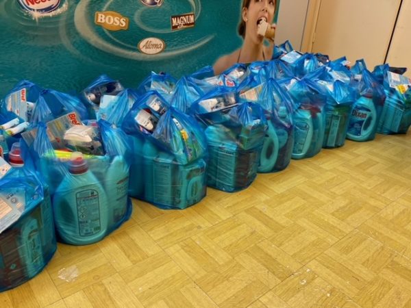 Οι οικογένειες έλαβαν είδη διατροφής από ισχυρή χορηγία της Τράπεζα Τροφίμων. Συγκεκριμένα έλαβαν (ζυμαρικά, γάλα, ζάχαρη, αλεύρι, ντοματοπολτό, κατεψυγμένα λαχανικά και snacs). Επίσης στα είδη διατροφής έλαβαν κατεψυγμένα προϊόντα (λαχανικά ή κοτόπουλο) από τους χορηγούς του ΚΕ.Σ.Ο.. Σε δεύτερη τσάντα έλαβαν καθαριστικά και είδη ατομικής υγιεινής από την Τράπεζα Τροφίμων, την Diversey Hellas και άλλους χορηγούς του. Επιπρόσθετα δόθηκαν μωρομάντηλα από την εταιρία Mega Disposables S.A. Καθώς και βρεφικές πάνες για τα μωρά, πάνες ακράτειας για τους ηλικιωμένους.
